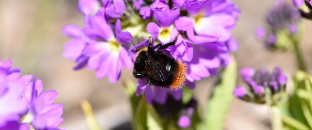 Keywords: flower primrose pink hummel insect spring plant animal close