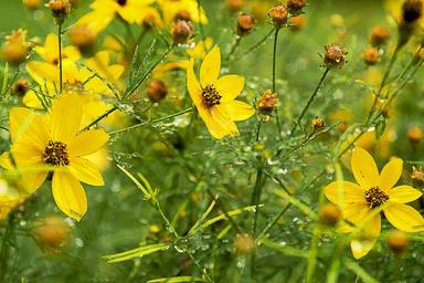 Keywords: flower summer summer flowers plants yellow flowers green nature flowering petal yellow flora drops of water blossomed