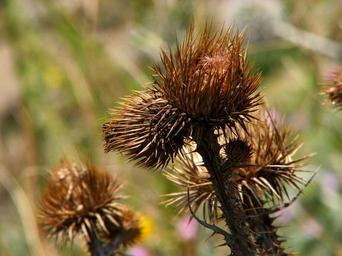 Keywords: flower thistle floral day green blue sky summer flora grass natural sunny