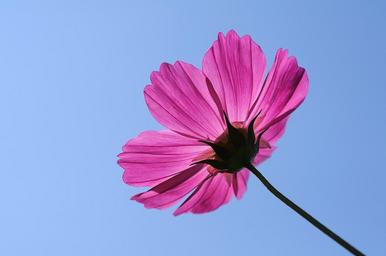 Keywords: flower universe plant cosmos single pink petals blue sky background