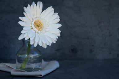 Keywords: flower white flower blossom bloom petals white gerbera schnittblume vase deco close text freedom