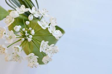 Keywords: flower white flower flowers white white flowers leek flower from above close text freedom
