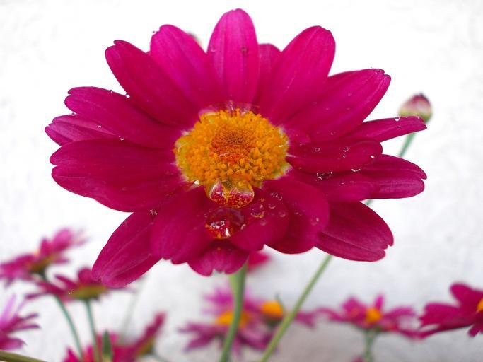 Keywords: flower with drops of water flower blossom bloom pink flower pink plant drop of water water drip