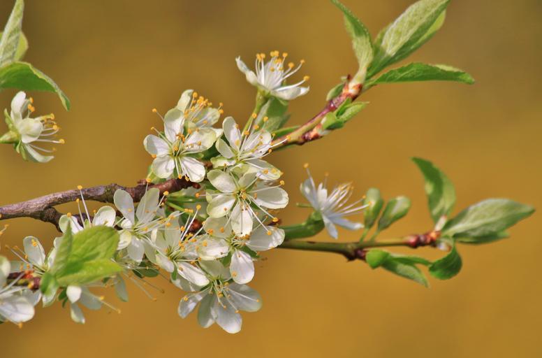 Keywords: flowering twig branch flowers plum tree plum tree flowers spring blossom bloom plant flora macro white green nature leaves close tree branches tender