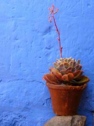 Keywords: flowerpot plant decoration red colorful color home wall hauswand