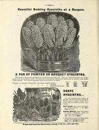 | Keywords: Flowers (16448787031).jpg Beautiful Bedding Hyacinths at a Bargain <br> A PAN OF POMPON OR BOUQUET HYACINTHS <br> sorts <br> what smaller <br> This class of Hyacinths produces lovely flowers at small cost They are identical with the larger <br> s only on a smaller scale We have all colors just as bright and spikes just as perfect only some- <br> it smaller For cutting purposes they are preferred hy many <br> Each Doz Hundred <br> Pompon or Bouquet Hyacinths all colors mixed Single 4c 40c 3 00 <br> Double 4c 40c 3 00 <br> Double and Single 4c 40c 3 00 <br> GRAPE <br> HYACINTHS <br> Are very fragrant and hardy as <br> an oak They never fail to bloom <br> Plant half a dozen bulbs in a <br> 5-inch pot and treat- as other hya- <br> cinths <br> SKY BLUE ” The most fairy-like <br> of spring flowers 3 for 5c <br> 15c per doz <br> SNOW WHITE ” Has long spikes <br> of milky whiteness Fine for <br> contrast and quite new <br> 3c each 12 for 25c <br> A beautiful mixture of grape Hya- <br> cinths including all colors <br> 15c doz 1 00 per 100 <br> Crape and Cockade Hyacinths mixed 3 for 5c 25c per dez 43800619 148987 77812 Page 14 Text http //www biodiversitylibrary org/page/43800619 1900 Henry G Gilbert Nursery and Seed Trade Catalog Collection ; Miss Mary E Martin Firm ; Miss Mary E Martin Firm Biodiversity Heritage Library Flowers Christmas Easter midwinter and spring Garden Stories Catalogs Flowers Miss Mary E Martin Firm Nurseries Horticulture Seeds U S Department of Agriculture National Agricultural Library bhl page 43800619 dc identifier http //biodiversitylibrary org/page/43800619 bhlGardenStories Bouquet Hyacinths Grape Hyacinths Bulbs Plants BHLinbloom miss mary e martin firm nurseries horticulture u s department of agriculture national agricultural library bhlgardenstories bouquet hyacinths grape hyacinths bulbs plants bhlinbloom Information field Flickr posted date ISOdate 2015-02-05 CC-BY-2 0 BioDivLibrary https //flickr com/photos/61021753 N02/16448787031 2015-08-25 00 54 12 cc-by-2 0 PD-old-70-1923 Miss Mary E Martin Firm seed catalog Photos uploaded from Flickr by Fæ using a script |