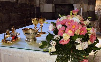 Keywords: flowers altar chalice church marriage