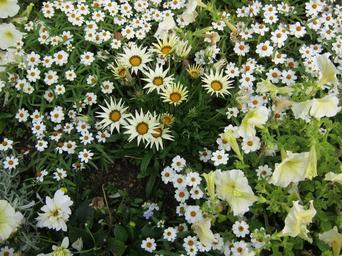 Keywords: flowers blütenmeer bed discounts decoration decorative garden garden exhibition colorful color bright noble midday flowers white gazania gazanie flower meadow