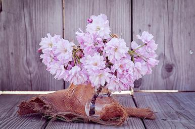Keywords: flowers cherry blossoms branches cherry blossom branches pink pink flowers spring bloom vase glass deco decoration close still life
