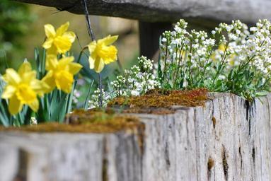 Keywords: flowers easter spring narcissus wall stone wall fouling planting