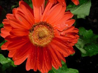 Keywords: flowers flower nature red summer spring blossom bloom close leaf plant raindrop rain gerberer mood