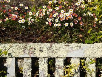 Keywords: flowers garden romantic wooden bench summer