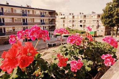 Keywords: flowers geranium sill window view block urban urban setting summer