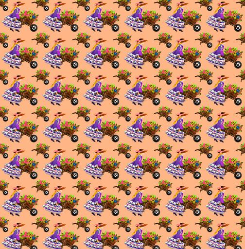 Keywords: flowers girl barrow wheel barrow wheel background wallpaper creative pattern design female woman person cute summer flowers wood abstract pattern abstract lilac green purple orange red hat ribbons