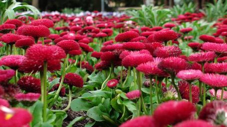 Keywords: flowers greens flower bed red