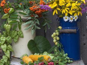 Keywords: flowers jugs corn on the cob milk can mountain ash