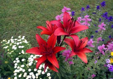 Keywords: flowers lilies iris nature meadow summer red white garden