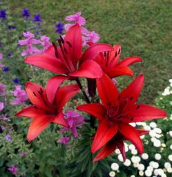 Keywords: flowers lilies iris nature meadow summer red white garden spring