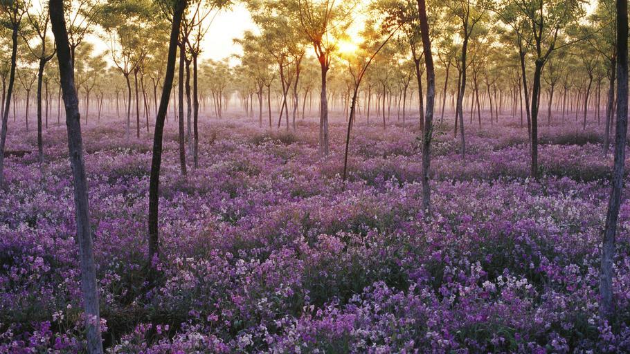 Keywords: flowers mood landscape purple field field of flowers morning evening sun forest wood