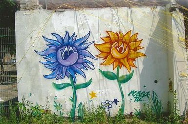 Keywords: graffiti painted flowers wall art drawing outdoor it's love (" it's love ("