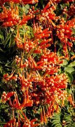 Keywords: flowers orange hedge bright green many
