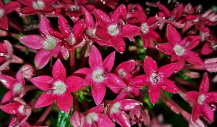 Keywords: flowers pentas egyptian starcluster red flowers pink flowers floral pink garden petals bloom stamens droplets wet dew dewdrops flora night close up background botany botanic rubiaceae pentas lanceolata