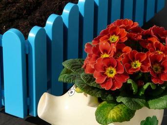 Keywords: flowers plant balcony piglet primrose red primula flower box blue