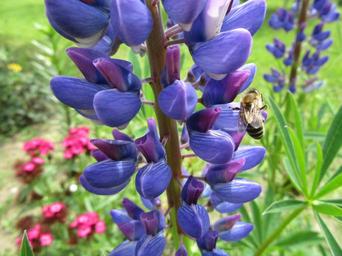 Keywords: flowers plant green blue violet bee