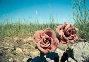 Keywords: flowers road sky dirt grass dust sun roses artificial