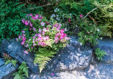 Keywords: flowers rock ferns plant nature landscape green outdoor pink sunny