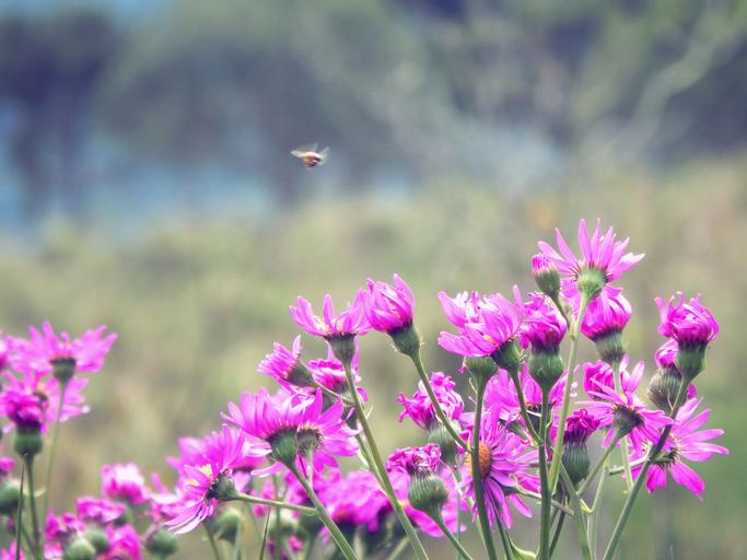 Keywords: flowers spring bee pink flower