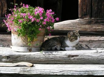 Keywords: flowers summer in the shadow cat concerns pet animal feline kitten dormant rest sleep out wood