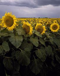 Keywords: flowers sunflowers field blooming yellow blossoms growing floral bright petals fresh colorful close up