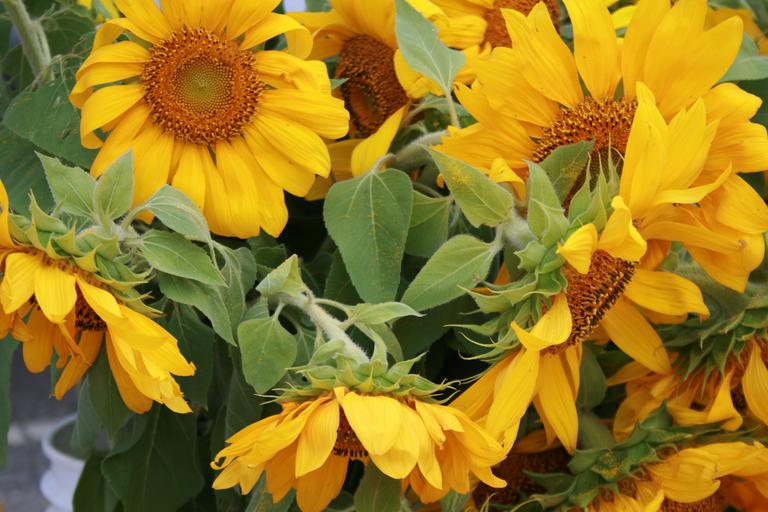 Keywords: flowers sunflowers yellow sun summer garden petal bright flowering blossom
