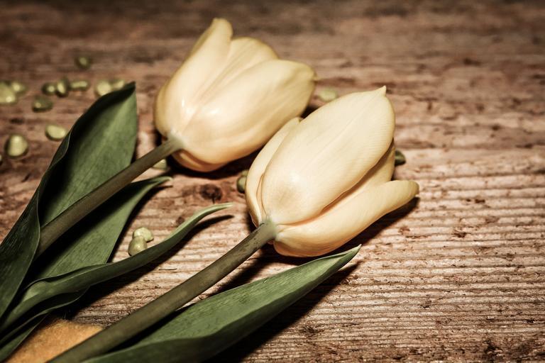 Keywords: flowers tulips yellow yellow flower schnittblume plant close wood retro look