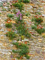 Keywords: flowers wall stone blooming colorful nature stone wall decoration blossom exterior mediterranean