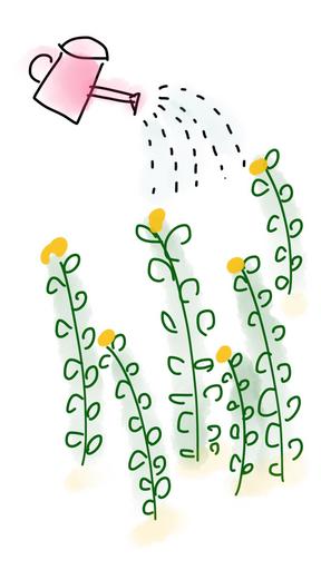 Keywords: flowers watering plants water jar water outside plant nature garden gardening outdoor leisure green yellow flowers watering grass field joy summer happy lifestyle sketch doodle