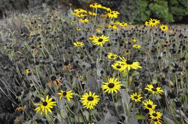 Keywords: flowers yellow floral field wild black eyed susan bright colorful petals flowering plants blossoms blooming gardens growth growing thick dense