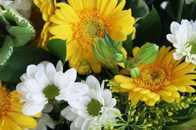 Keywords: flowers yellow flowers white flowers marguerite yellow green white bouquet