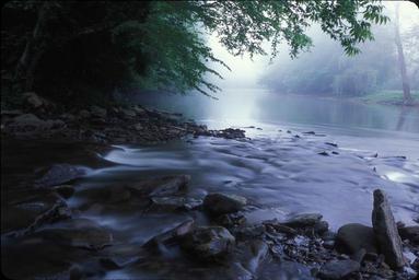 Keywords: flowing water stream wilderness shoreline nature fresh landscape scenic overhanging trees rocks splash