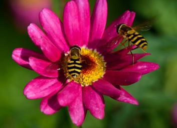 Keywords: flue wasp fly flower pink