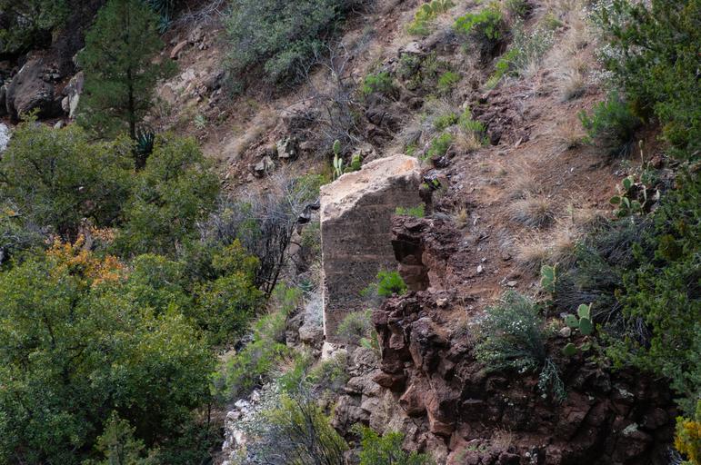 Keywords: arizona coconino national forest coconinonationalforest flume trail flumetrail forest service forestservice fossil creek fossilcreek fossil springs fossilsprings fossil springs wilderness fossilspringswilderness national forest nationalforest red rock ranger district redrockrangerdistrict tonto national forest tontonationalforest backpacking building canyon desert forest hiking historic outdoors spring springtime structure trail wilderness camp verde campverde united states unitedstates outdoor landscape mountainside plant tree Many old structures are left from the days the flume ran through the canyon diverting Fossil Creek's water to the Irving power plant. The Flume Trail starts at the old Irving Power Plant location and follows the line of the now-removed flume that carried the water from the dam to the power plants for generating electricity. The trail ends at the old Fossil Creek Dam, a four and a half mile trek one way. The trail ascends steadily about 500 feet from an elevation of 3769 foot at the trailhead over the first mile. For the next three and a half miles, the trail rolls gently several times in approximately 150 foot elevation changes before arriving at the dam. The trail is approximately 500 feet up the side of the canyon, offering fantastic views of the canyon and creek below. There is no creek acccess between the trailhead and the dam. The trail is very exposed and extremely hot in the warmer months. Hikers should carry at least four quarts of water. The trail is in the Fossil Creek Wilderness. Bikes and mechanized vehicles are prohibited. Camping is prohibited along Flume Trail, from the Fossil Creek Dam for several miles downstream (west) along the canyon. Flume Trail meets Fossil Springs Trail at the old dam. Continue another half mile through a narrow section of the canyon to find easy camping near the creek in the springs area. Camping is permitted during the fall-winter season 100 feet or more from the creek. A half mile from the dam is a marked side trail leading to the first spring source, where many hikers choose to refill their water bottles. Fossil Creek is one of two Wild and Scenic rivers in Arizona. A series of springs gush 20,000 gallons a minute year-round at the bottom of a 1,600 foot deep canyon, creating a lush riparian oasis rich with life. Over the years these calcium laden waters have laid down huge deposits of a type of limestone called travertine, creating deep pools for miles along the creek. The Wilderness and surrounding area are on the Tonto and Coconino National Forests, and are managed by the Coconino National Forest. During the spring-summer season, camping is prohibited anywhere in the Wilderness and surrounding area, and a reserved parking permit is required to park at the Flume trailhead at the Irving parking lot. See Flume Trail and Fossil Creek on the USFS Coconino National Forest website Photo by Deborah Lee Soltesz, March 11, 2016. Source: USFS Coconino National Forest. Many old structures are left from the days the flume ran through the canyon diverting Fossil Creek's water to the Irving power plant. The Flume Trail starts at the old Irving Power Plant location and follows the line of the now-removed flume that carried the water from the dam to the power plants for generating electricity. The trail ends at the old Fossil Creek Dam, a four and a half mile trek one way. The trail ascends steadily about 500 feet from an elevation of 3769 foot at the trailhead over the first mile. For the next three and a half miles, the trail rolls gently several times in approximately 150 foot elevation changes before arriving at the dam. The trail is approximately 500 feet up the side of the canyon, offering fantastic views of the canyon and creek below. There is no creek acccess between the trailhead and the dam. The trail is very exposed and extremely hot in the warmer months. Hikers should carry at least four quarts of water. The trail is in the Fossil Creek Wilderness. Bikes and mechanized vehicles are prohibited. Camping is prohibited along Flume Trail, from the Fossil Creek Dam for several miles downstream (west) along the canyon. Flume Trail meets Fossil Springs Trail at the old dam. Continue another half mile through a narrow section of the canyon to find easy camping near the creek in the springs area. Camping is permitted during the fall-winter season 100 feet or more from the creek. A half mile from the dam is a marked side trail leading to the first spring source, where many hikers choose to refill their water bottles. Fossil Creek is one of two Wild and Scenic rivers in Arizona. A series of springs gush 20,000 gallons a minute year-round at the bottom of a 1,600 foot deep canyon, creating a lush riparian oasis rich with life. Over the years these calcium laden waters have laid down huge deposits of a type of limestone called travertine, creating deep pools for miles along the creek. The Wilderness and surrounding area are on the Tonto and Coconino National Forests, and are managed by the Coconino National Forest. During the spring-summer season, camping is prohibited anywhere in the Wilderness and surrounding area, and a reserved parking permit is required to park at the Flume trailhead at the Irving parking lot. See Flume Trail and Fossil Creek on the USFS Coconino National Forest website Photo by Deborah Lee Soltesz, March 11, 2016. Source: USFS Coconino National Forest.