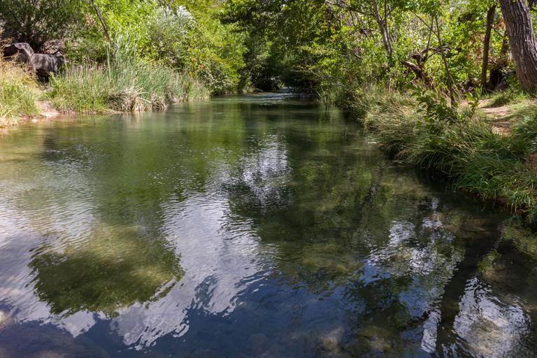 | Keywords: arizona coconino national forest coconinonationalforest flume trail flumetrail flume trailhead flumetrailhead forest service forestservice fossil creek fossilcreek fossil springs fossilsprings fossil springs wilderness fossilspringswilderness irving national forest nationalforest pentax k-1 pentaxk1 red rock ranger district redrockrangerdistrict tonto national forest tontonationalforest usfs canyon desert forest hiking outdoors riparian summer wilderness strawberry water creek landscape outdoor watercourse stream riverbank lake The Flume Trail starts at the old Irving Power Plant location and follows the line of the now-removed flume that carried the water from the dam to the power plants for generating electricity. The trail ends at the old Fossil Creek Dam, a four and a half mile trek one way. The trail ascends steadily about 500 feet from an elevation of 3769 foot at the trailhead over the first mile. For the next three and a half miles, the trail rolls gently several times in approximately 150 foot elevation changes before arriving at the dam. The trail is approximately 500 feet up the side of the canyon, offering fantastic views of the canyon and creek below. There is no creek access between the trailhead and the dam. The trail is very exposed and extremely hot in the warmer months. Hikers should carry at least four quarts of water. The trail is in the Fossil Creek Wilderness. Bikes and mechanized vehicles are prohibited. Flume Trail ends at the old Fossil Creek Dam, where the trail joins with Fossil Springs Trail. Camping is prohibited along Flume Trail, from the Fossil Creek Dam for several miles downstream (west) along the canyon to the bridge. Flume Trail meets Fossil Springs Trail at the old dam. Continue another half mile on Fossil Springs Trail through a narrow section of the canyon to find easy camping near the creek in the springs area. Camping is permitted during the fall-winter season 100 feet or more from the creek. A half a mile from the dam is a marked side trail leading to the first spring source, where many hikers refill their water bottles. Fossil Creek is one of two Wild and Scenic rivers in Arizona. A series of springs gush 20,000 gallons a minute year-round at the bottom of a 1,600 foot deep canyon, creating a lush riparian oasis rich with life. Over the years these calcium laden waters have laid down huge deposits of a type of limestone called travertine, creating deep pools for miles along the creek. The Wilderness and surrounding area are on the Tonto and Coconino National Forests, and are managed by the Coconino National Forest. During the spring-summer season, camping is prohibited anywhere in the Wilderness and surrounding area, and a reserved parking permit is required to park at the Flume trailhead at the Irving parking lot. See Flume Trail and Fossil Creek on the USFS Coconino National Forest website for maps, regulations, permit reservations, and other details. Photo by Deborah Lee Soltesz, August 10, 2016. Source: USFS Coconino National Forest. The Flume Trail starts at the old Irving Power Plant location and follows the line of the now-removed flume that carried the water from the dam to the power plants for generating electricity. The trail ends at the old Fossil Creek Dam, a four and a half mile trek one way. The trail ascends steadily about 500 feet from an elevation of 3769 foot at the trailhead over the first mile. For the next three and a half miles, the trail rolls gently several times in approximately 150 foot elevation changes before arriving at the dam. The trail is approximately 500 feet up the side of the canyon, offering fantastic views of the canyon and creek below. There is no creek access between the trailhead and the dam. The trail is very exposed and extremely hot in the warmer months. Hikers should carry at least four quarts of water. The trail is in the Fossil Creek Wilderness. Bikes and mechanized vehicles are prohibited. Flume Trail ends at the old Fossil Creek Dam, where the trail joins with Fossil Springs Trail. Camping is prohibited along Flume Trail, from the Fossil Creek Dam for several miles downstream (west) along the canyon to the bridge. Flume Trail meets Fossil Springs Trail at the old dam. Continue another half mile on Fossil Springs Trail through a narrow section of the canyon to find easy camping near the creek in the springs area. Camping is permitted during the fall-winter season 100 feet or more from the creek. A half a mile from the dam is a marked side trail leading to the first spring source, where many hikers refill their water bottles. Fossil Creek is one of two Wild and Scenic rivers in Arizona. A series of springs gush 20,000 gallons a minute year-round at the bottom of a 1,600 foot deep canyon, creating a lush riparian oasis rich with life. Over the years these calcium laden waters have laid down huge deposits of a type of limestone called travertine, creating deep pools for miles along the creek. The Wilderness and surrounding area are on the Tonto and Coconino National Forests, and are managed by the Coconino National Forest. During the spring-summer season, camping is prohibited anywhere in the Wilderness and surrounding area, and a reserved parking permit is required to park at the Flume trailhead at the Irving parking lot. See Flume Trail and Fossil Creek on the USFS Coconino National Forest website for maps, regulations, permit reservations, and other details. Photo by Deborah Lee Soltesz, August 10, 2016. Source: USFS Coconino National Forest. |