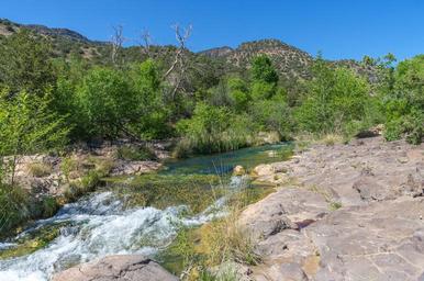 | Keywords: arizona coconino national forest coconinonationalforest forest service forestservice fossil creek fossilcreek k20d national forest nationalforest pentax k20d pentaxk20d red rock ranger district redrockrangerdistrict tonto national forest tontonationalforest usfs waterfall trail waterfalltrail canyon desert forest hiking outdoors spring springtime trail camp verde campverde united states unitedstates outdoor water landscape creek hill mountainside river riverbed rock formation rock Fossil Creek produces 20,000 gallons of water a minute from a series of springs at the bottom of a 1,600 foot deep canyon. This permanent water source has created a stunningly beautiful, green riparian zone rich with flora and fauna at the bottom of this arid canyon in Arizona's high desert. Travertine deposits encase whatever happens to fall into the streambed, forming the fossils for which the area is named. These deposits create deep pools along the length of the creek, providing opportunities to find more secluded swimming holes than the popular pool at the waterfall. Fossil Creek is one of two "Wild and Scenic" rivers in Arizona. This designation was achieved when the Irving power plant was decommissioned, and removal of flume and dam on the creek allowed the creek to flow free. Increasing popularity has led to the Coconino and Tonto National Forests to implement a parking permit reservation system in 2016. Reserved parking permits allow visitors to have a parking spot available in their chosen parking lot. Many visitors drive two or three hours to get to the creek. The final descent to the creek at the bottom of a canyon is on an extremely rough, rocky jeep road. In prior years, the area would often be closed to entry when it reached capacity, and potential visitors would be turned away after the long, difficult drive. Photo by Deborah Lee Soltesz, May 4, 2016. For trail and recreation information, see Fossil Creek, Fossil Springs Wilderness, and the Coconino National Forest. Fossil Creek produces 20,000 gallons of water a minute from a series of springs at the bottom of a 1,600 foot deep canyon. This permanent water source has created a stunningly beautiful, green riparian zone rich with flora and fauna at the bottom of this arid canyon in Arizona's high desert. Travertine deposits encase whatever happens to fall into the streambed, forming the fossils for which the area is named. These deposits create deep pools along the length of the creek, providing opportunities to find more secluded swimming holes than the popular pool at the waterfall. Fossil Creek is one of two "Wild and Scenic" rivers in Arizona. This designation was achieved when the Irving power plant was decommissioned, and removal of flume and dam on the creek allowed the creek to flow free. Increasing popularity has led to the Coconino and Tonto National Forests to implement a parking permit reservation system in 2016. Reserved parking permits allow visitors to have a parking spot available in their chosen parking lot. Many visitors drive two or three hours to get to the creek. The final descent to the creek at the bottom of a canyon is on an extremely rough, rocky jeep road. In prior years, the area would often be closed to entry when it reached capacity, and potential visitors would be turned away after the long, difficult drive. Photo by Deborah Lee Soltesz, May 4, 2016. For trail and recreation information, see Fossil Creek, Fossil Springs Wilderness, and the Coconino National Forest. |