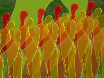 Keywords: fluorescent crowd human personal abstract modern art art colorful color gaudy bright artwork plastic red yellow green orange