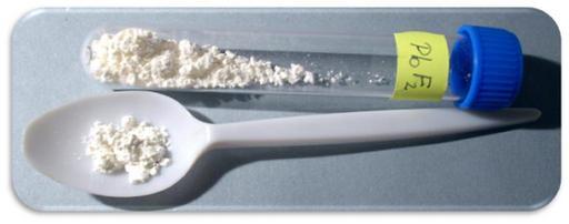 Keywords: Fluorid olovnatý.PNG PbF2 own 2007-06-24 Ondřej Mangl Není nutno Lead II fluoride Samples of inorganic compounds