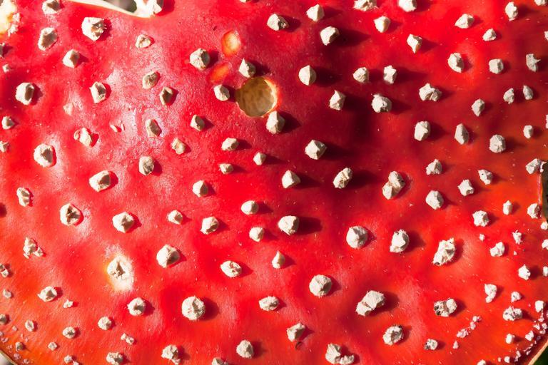 Keywords: fly agaric amanita muscaria mushroom hat red signal red flake white velum flakes autumn nature forest toxic macro detail screen fund background