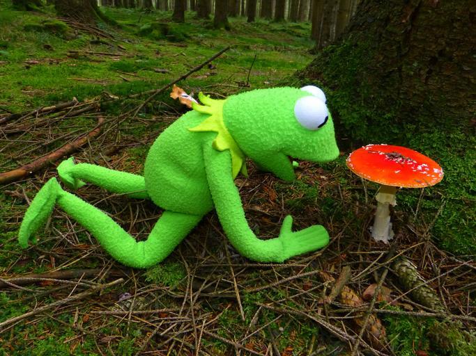 Keywords: fly agaric mushroom red fly agaric mushroom toxic spotted autumn forest nature red kermit frog green marvel