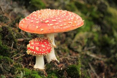 Keywords: fly agaric mushroom autumn forest toxic spotted nature moss red gift forest mushroom spotty october plant forest floor flora autumn time time of year hat big and small protection pair two