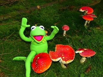Keywords: fly agaric mushrooms red fly agaric mushroom toxic spotted autumn forest nature red moss kermit frog green look forward